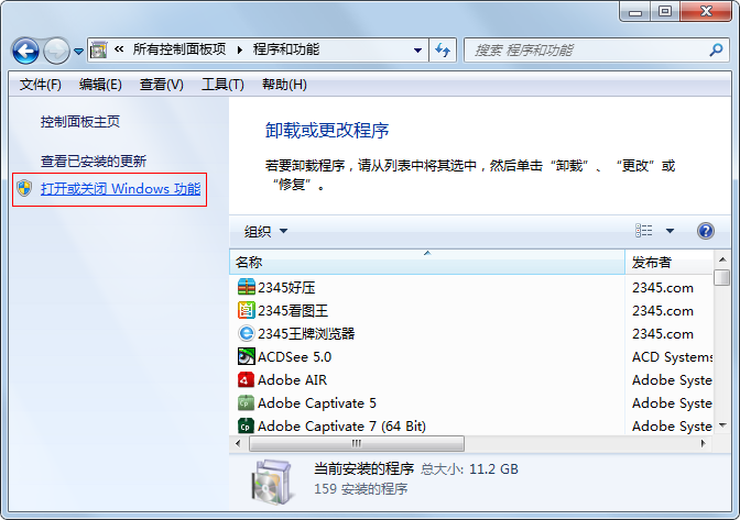 找到“程序和功能”下的“啟用或關(guān)閉Windows功能”。如圖: