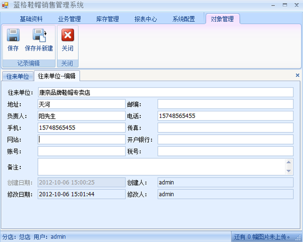 在上圖中點(diǎn)擊【新建】,打開(kāi)往來(lái)單位-編輯界面,在界面上填寫相關(guān)的信息。填寫好之后點(diǎn)擊【保存】,這樣就包往來(lái)單位錄入到系統(tǒng)中了。
