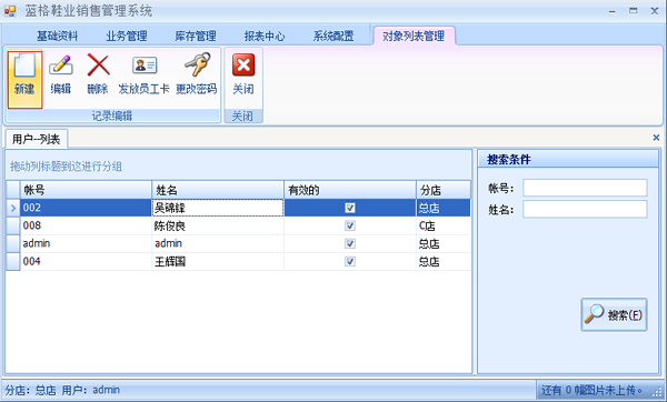 其中 用戶帳號(hào)和用戶名稱必須填寫,用戶帳號(hào)用戶在系統(tǒng)登陸時(shí)候輸入的帳號(hào)。 所屬分店也是必須要求填寫,當(dāng)用戶用帳號(hào)登陸系統(tǒng)后,系統(tǒng)自動(dòng)識(shí)別該用戶屬于哪分店。