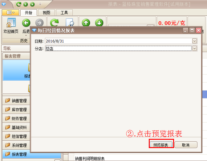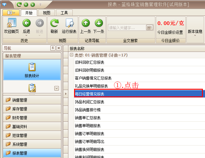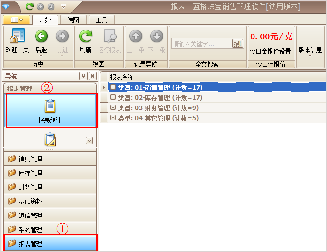 傲藍珠寶銷售管理軟件豐富報表中心,隨時掌控門店情況