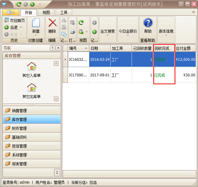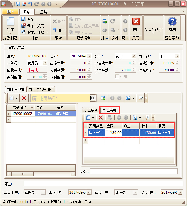 傲藍(lán)珠寶首飾銷售軟件委外加工管理操作說明