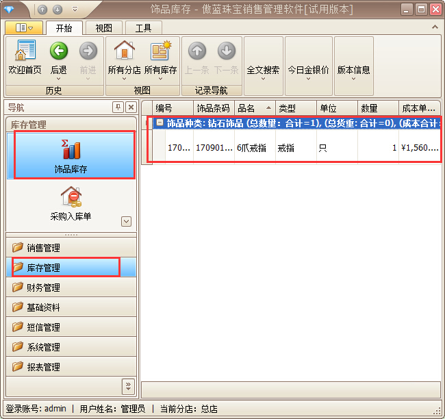 6、飾品委外加工完成之后,在飾品庫存中可以看到,新飾品庫存已經(jīng)自動增加,如圖: