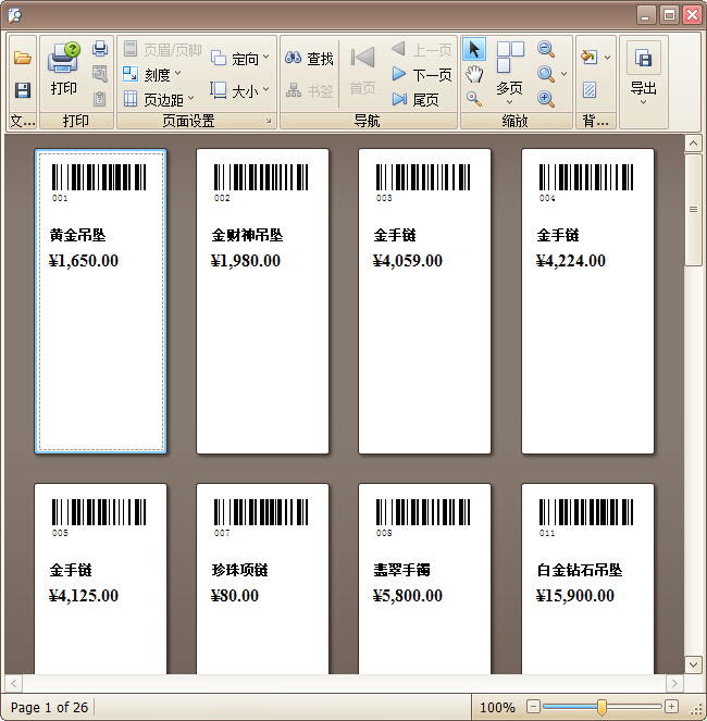 ①此外,軟件還支持批量打印飾品標簽,在飾品管理中全選飾品,點擊菜單欄上的“標簽報表”,可以直接批量打印,如圖: