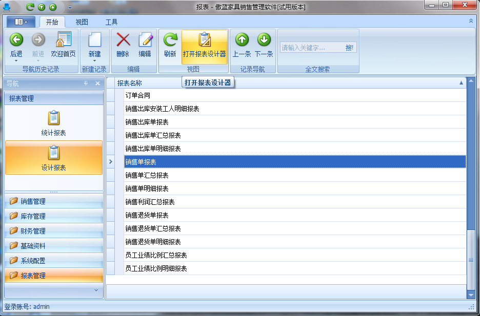 1、打開報表管理,點擊設(shè)計報表,點擊你要修改的報表,后點擊打開報表設(shè)計器