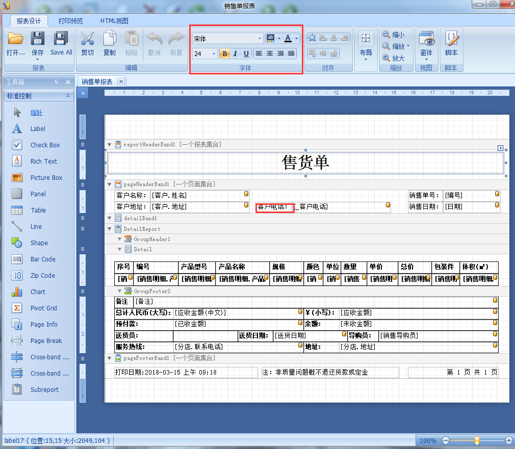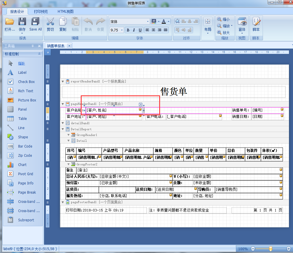 4、工具箱可以在報表添加對應的內(nèi)容,如:標簽、復選框、圖片、表格等等。
