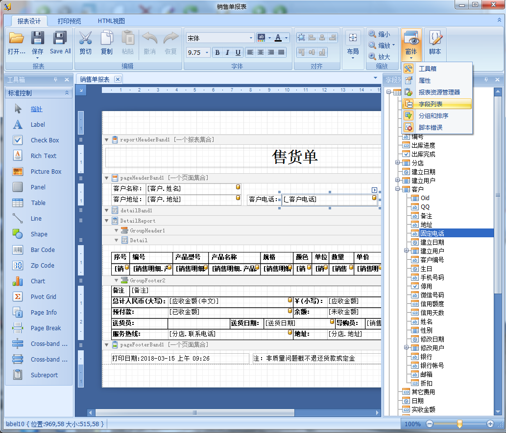 傲藍家具銷售管理軟件具備報表設(shè)計功能,給門店提供自定義的銷售單據(jù)、報表設(shè)計需求,根據(jù)店鋪的需求可以自定義添加或減少字段,實現(xiàn)在單據(jù)上呈現(xiàn)個性化需求的內(nèi)容信息,滿足各個不同家具門店的銷售單設(shè)計需求。