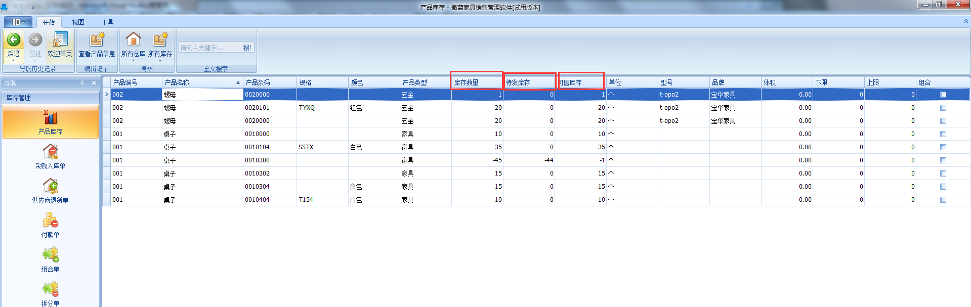 家具進銷存軟件庫存管理為核心的有三個字段的內容:
