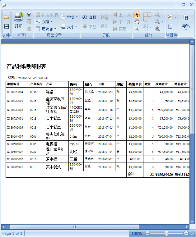 在傲藍家具店銷售管理軟件的商品利潤明細報表中可以清晰的看到,同樣的商品、同樣的商品售價在不同的采購成本價的兩批商品,系統遵循了先進先出的原則進行銷售,同樣也以先進先出的原則來核算商品的成本,從而為店鋪計算出不一樣的成本價和利潤額,如圖: