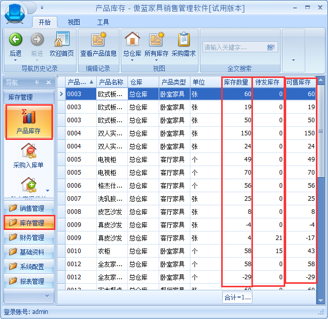 傲藍家具商城管理軟件協(xié)助商場的管理好門店的庫存,連鎖家具店可以在總店中統(tǒng)一管理庫存,方面將各個地方的庫存進行合理的調(diào)配,實現(xiàn)家具銷售大化,那么店內(nèi)產(chǎn)品的庫存如何在軟件中查詢呢?