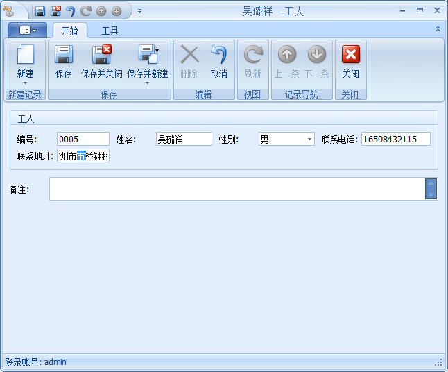 員工:【系統配置】→【員工】→新建