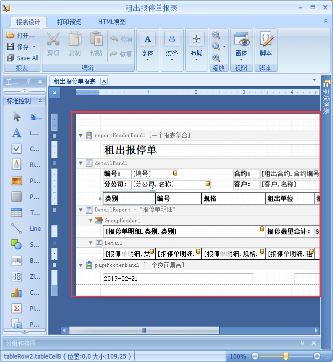 2、在右邊欄選中需要重新設計調整的報表,單擊菜單欄上的“設計報表”進入報表編輯界面后就可以對報表格式,內容,以及顯示數據進行編輯。
