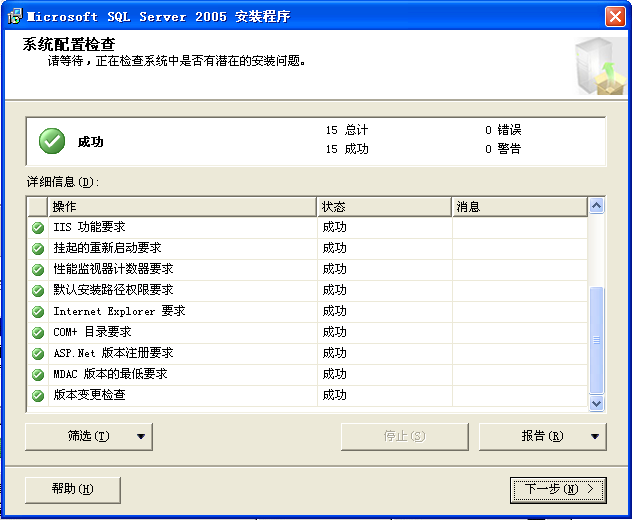 程序檢測各種安裝必需的環境,都通過了就可以直接點下一步繼續安裝了