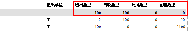傲藍建筑租賃管理軟件的這個問號是提醒用戶這個數字可能與實際情況不相符。例如用戶選擇鋼管按米出租時,很多時候會出現租出100米規格是4米的鋼管,但是還回來的卻全是2.5米鋼管。還回來的總米數雖然都是100米,但是回收規格不是4米,所以系統依然會顯示4米鋼管在租100米,實際上已經是全部還原了。總數量也顯示在租數量為0。如下圖: