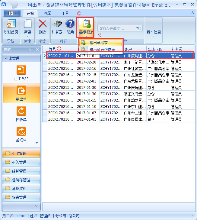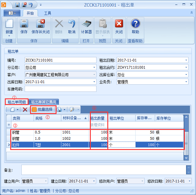 傲藍(lán)建筑租賃管理軟件租出單管理的具體操作步驟: