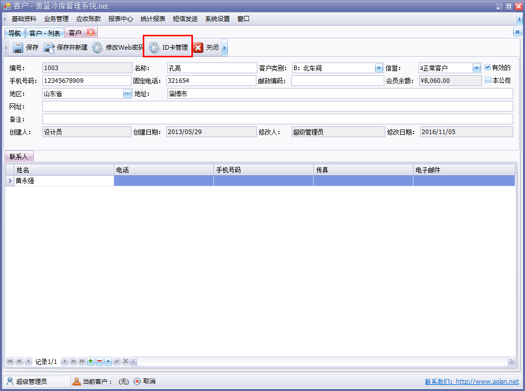 傲藍冷庫信息管理系統,ID卡高效管理業務功能。使用ID卡進行出入庫的管理,客戶不需要攜帶出庫提貨卡,所有出庫僅憑一張ID卡就可完成,實現智能提貨和支付賬款,為客戶出貨帶來便捷。