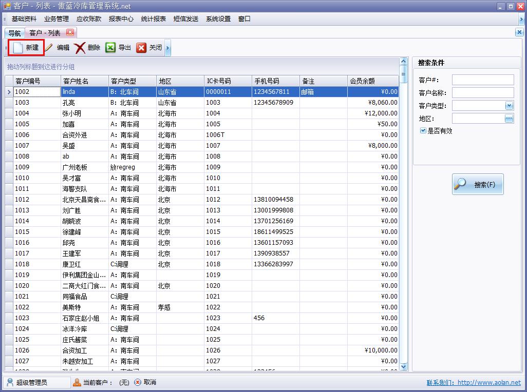 貨主資料管理是傲藍冷庫信息管理系統(tǒng)對于冷庫企業(yè)客戶資料進行管理的功能,例如:客戶類型、客戶信譽級別、客戶公司性質、客戶企業(yè)所在地區(qū)、客戶結算方式、結算使用的現(xiàn)金銀行等信息的管理。
