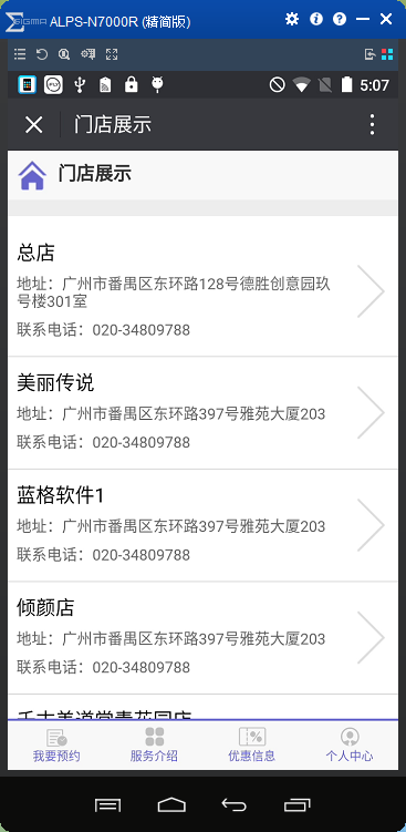 ①美容院門店展示,可展示相關門店的優惠信息,方便在外出差或旅行的會員選擇近的美容院門店進行消費,如圖: