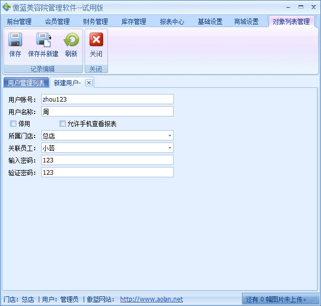 傲藍美容院管理軟件角色權(quán)限設(shè)置保障數(shù)據(jù)安全
