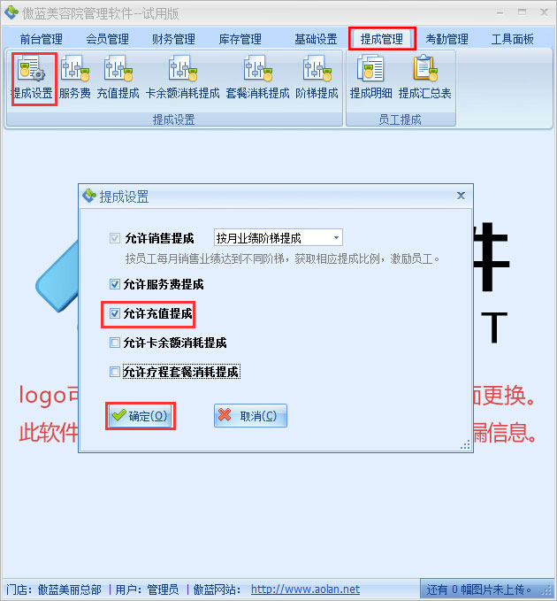 傲藍美容院店務管理系統(tǒng)對于客戶充值設(shè)置提成的操作說明