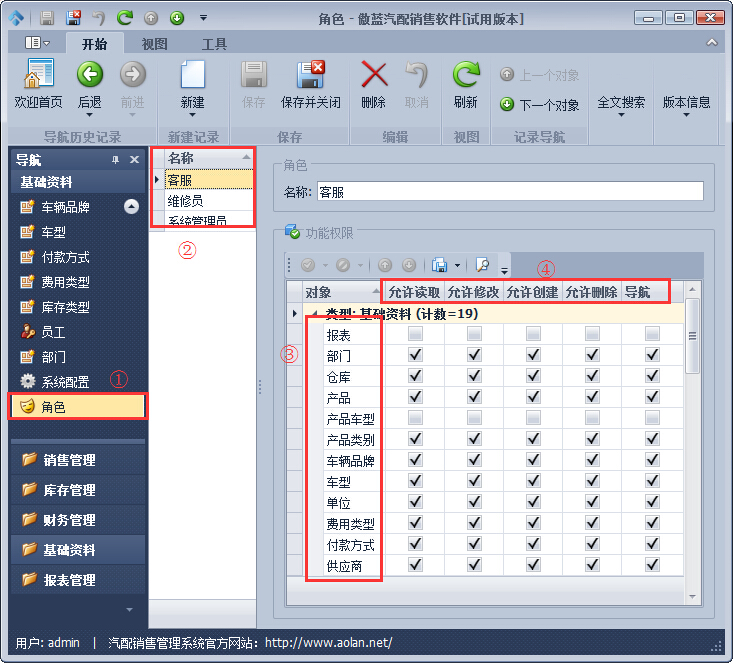 傲藍汽配銷售軟件的角色權限設置具體操作,請點擊視頻鏈接了解。