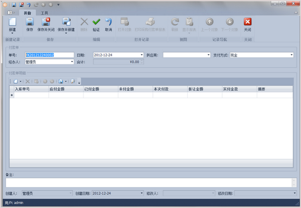 2新建付款單