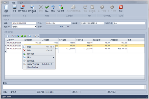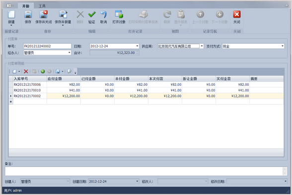 傲藍(lán)汽車配件銷售管理軟件配件付款單修改界面