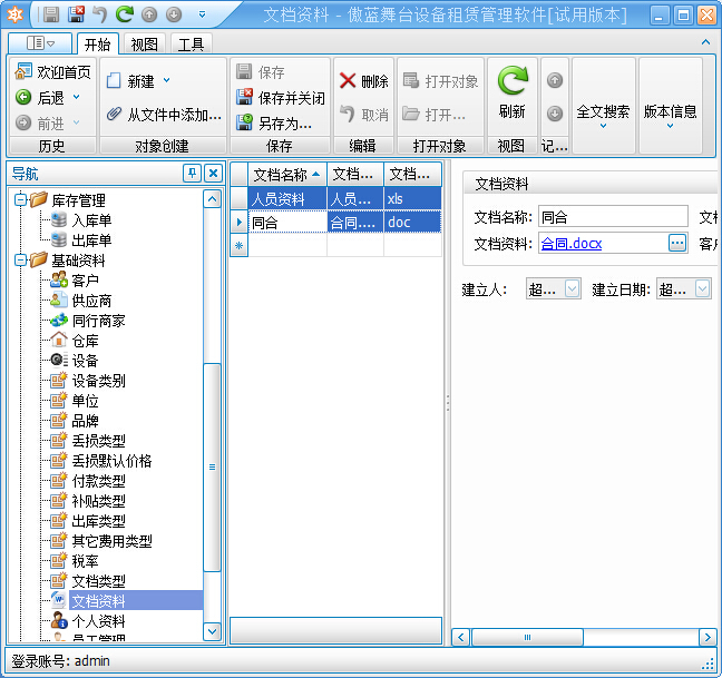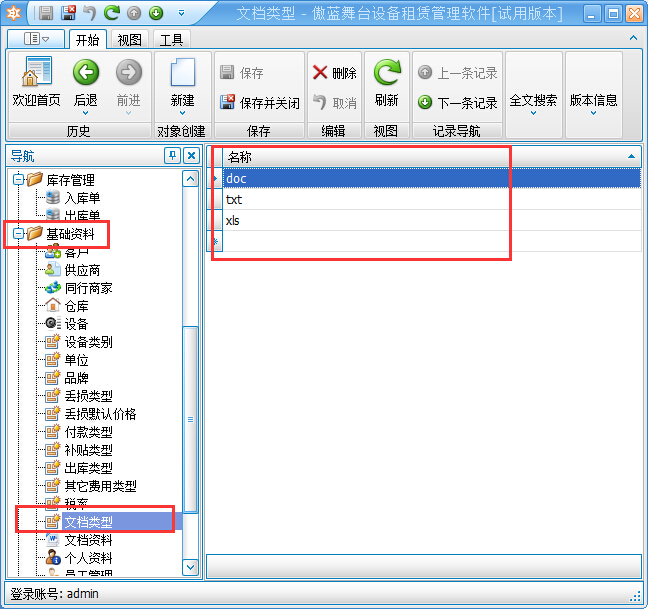 在基礎資料里可以管理文檔類型和文檔資料等信息,如下圖所示: