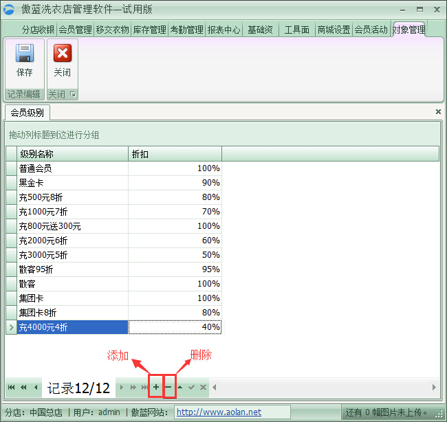 傲藍洗衣軟件會員級別設置及相關實例操作步驟如下: