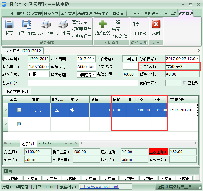 傲藍洗衣軟件會員分級別管理實現優惠折扣
