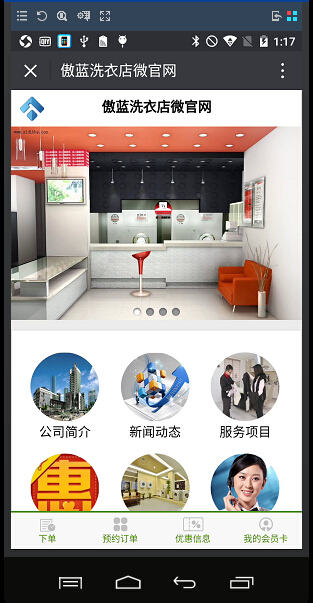 6、洗衣店微信公眾號微官網,很好展現洗衣店的整體實力,已經洗衣店門店的服務項目;讓會員更透徹的了解洗衣店,更加信賴洗衣店,如圖: