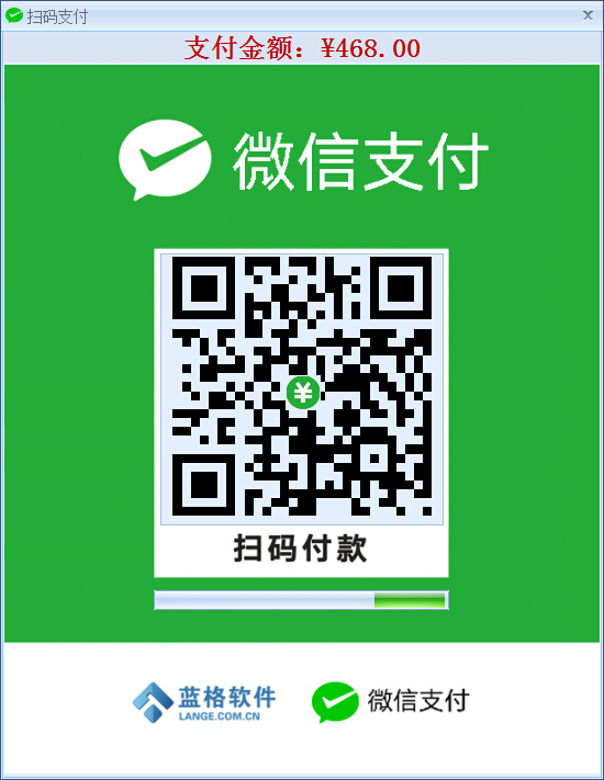 掃碼支付,軟件自動生成收款二維碼,客戶使用微信掃碼功能即可掃碼支付: