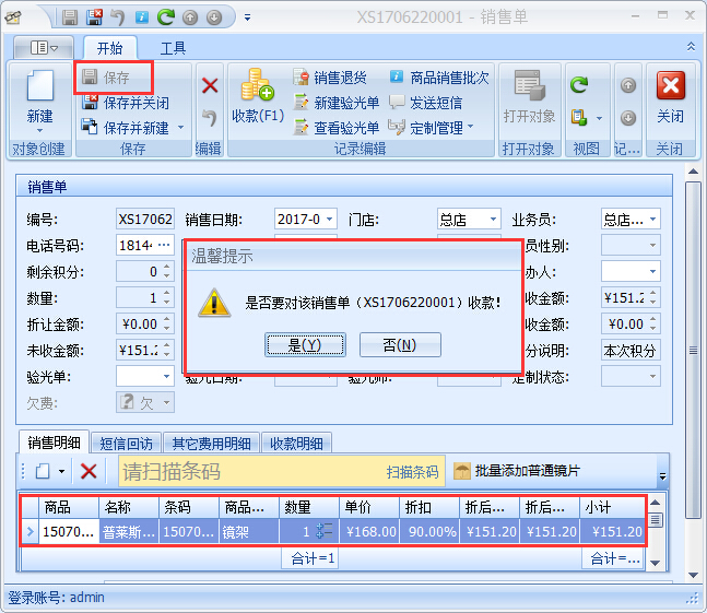 傲藍眼鏡零售管理軟件收款方式操作演示完成!