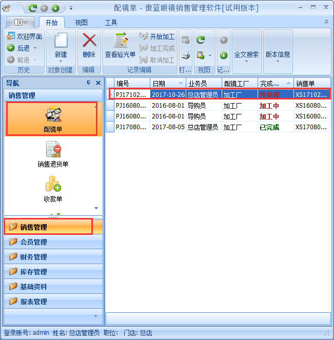 傲藍眼鏡專賣店管理軟件配鏡中心訂單管理,實時反映加工進度