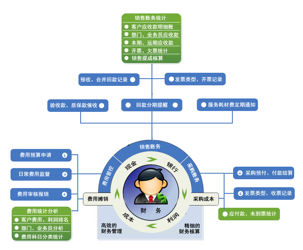 一個企業的財務管理包含了銷售回款、應收款、銷售開票、采購付款、應付款、采購收票、成本核算、費用報銷、固定資產、薪資統籌等貫穿了整個公司的資金流才是全面的財務管理。然后,企業可以根據財務管理中的數據進行分析,設法在經營管理過程中實現“開源”、“節流”,受實現企業的利潤大化,這才是醫療設備行業財務管理的目的所在。