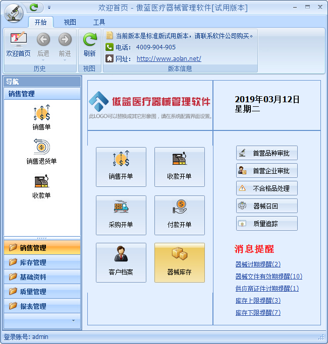 傲藍醫療器械銷售管理軟件包含六大主要功能模塊